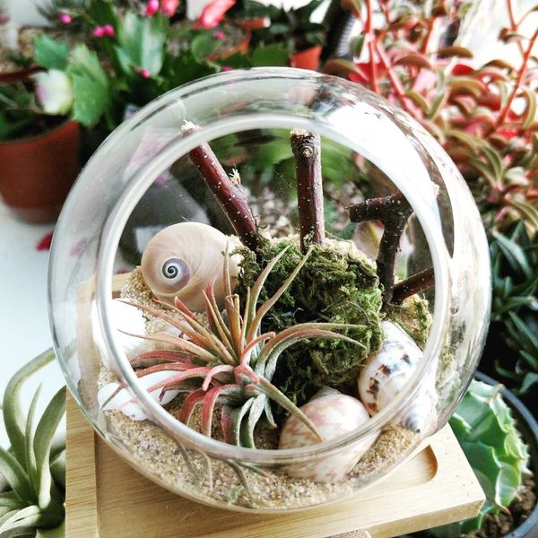 Sandy Beach Globe Tabletop Air Plant Glass Terrarium
