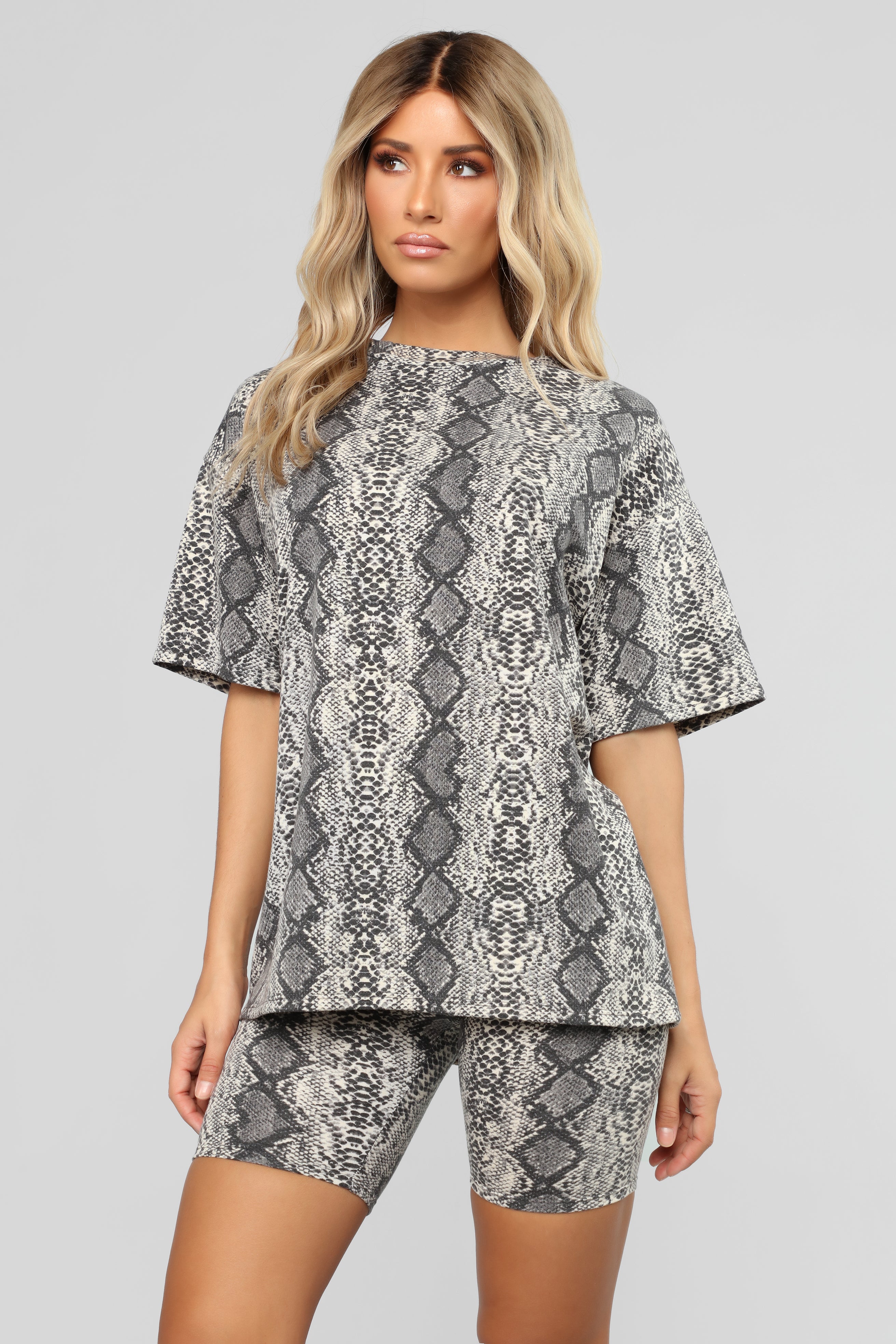 Slithering To You Snakeskin Biker Short Set Taupe Multi Fashion Nova Matching Sets Fashion Nova
